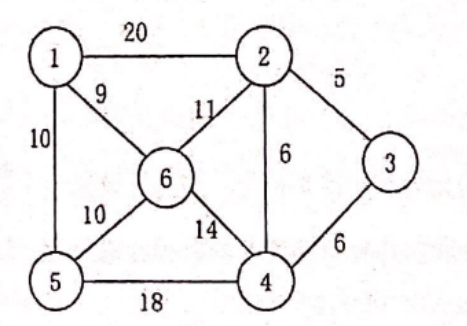 5.(8分) 已知一个无图如下图所示,给出从顶点1出发用 Prim 普利姆算法生成所有可能的最小树的过程